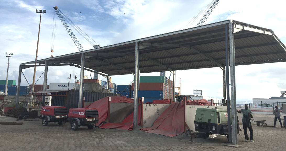 This project, located in a port in Gabon, needed to be airy and open, but also very robust (to be able to withstand strong sea winds). We therefore provided our client with a steel structure that was appropriate to the area, thanks to the preliminary study by our in-house design office and the use of High Strength Steel. All of this was done to match his project and to ensure an industrial framework that would last over time.
